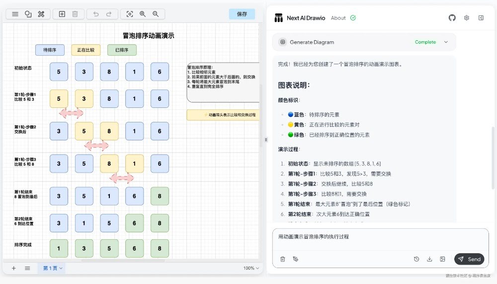 最后多说两句,这个项目的实现其实并不复杂。作者通过集成 Vercel AI SDK 轻松对接各种大模型,让 AI 生成 draw.io 能理解的 XML 代码。 然后直接使用开源的 draw.io 代码实现了核心的绘图展示和编辑能力,整个过程和 AI 生成网站是类似的。