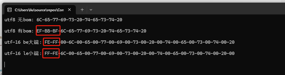 Console.WriteLine("utf-16 be大端: "+utf16_le + "\n");
