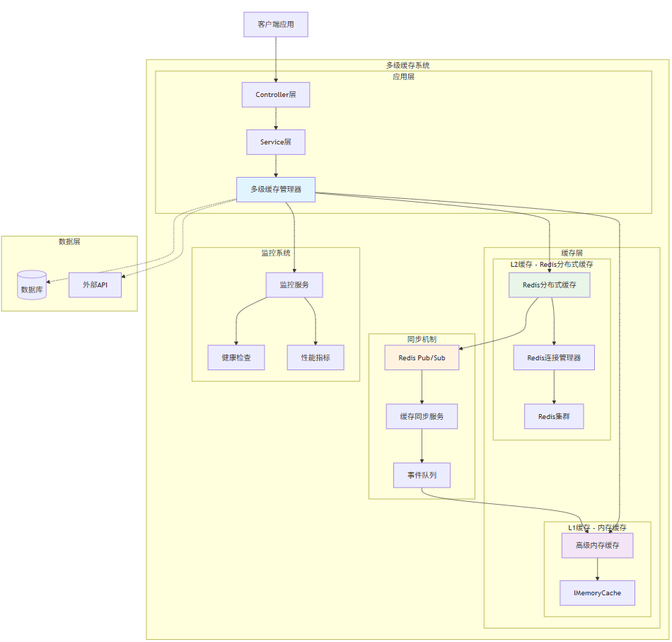 多级缓存架构采用分层设计模式,每一层都有明确的职责和边界:
