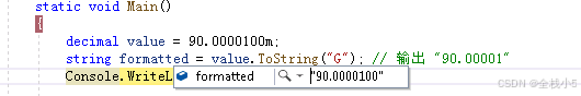 decimal + "G" | 高精度计算 | 90.0000100m → "90.00001" |