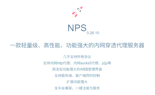 NPS(NATbyPass Server)是一款轻量级、高性能的内网穿透代理服务器,支持几乎所有流量转发,可用于访问内网网站、SSH访问、远程桌面等场景。