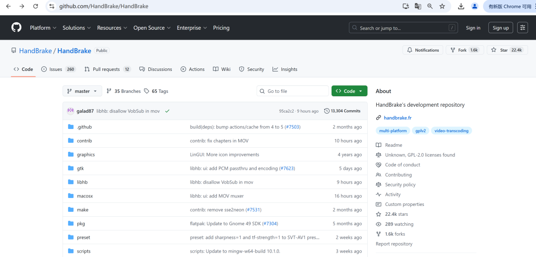 [点晴永久免费OA]HandBrake:一款开源、跨平台的视频转码工具,在几乎不损失画质的前提下,把体积压缩减到原来的三分之一甚至更小