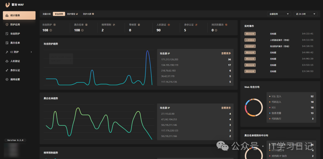 简介SafeL是一款开源免费的自托管Web应用防火墙(WAF),旨在为Web应用服务提供一层安全防护屏障,可有效防御各类非法恶意攻击。它提供了访问频率限制、人机验证、动态防护等核心功能,通过过滤和监控Web应用与互联网之间的HTTP流量来保护Web服务,可有效抵御各类SQL注入、XSS、代码注入、命令注入、CRLF注入、ldap注入、xpath注入、RCE、XXE、SSRF、路径遍历、后门、暴力破解、CC、爬虫等攻击,保护用户资产不受侵害。 SafeL的防护效果不仅仅只是纸上谈兵,截止目前为止,在全球装机量已经超过30万台,日均处理300亿次请求,检出率76.17%,误报率仅0.22%。 它支持容器化部署(Docker 、Docker-compose)和自有服务器部署2种方式,用户可基于需求灵活选择,作为自托管WAF,用户可对流量、日志、配置完全掌控,不依赖任何第三方SaaS,适合对数据隐私、安全性有较高要求的个人和团队,可应用于个人网站、企业网站、企业各类服务,大型Web应用等多种场景。