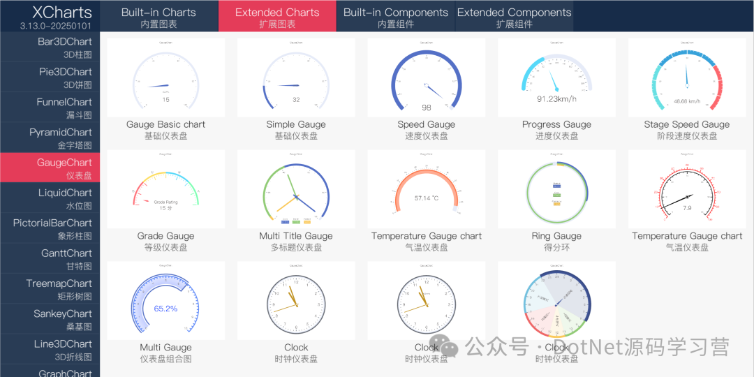 开源地址:https://github.com/Live-Charts/LiveCharts2 XCharts 是一款基于 UGUI 的功能强大、简单易用的 Unity 数据可视化图表插件。它提供了丰富的图表类型和灵活的配置选项,帮助开发者快速实现专业级的数据可视化效果。支持折线图、柱状图、饼图、雷达图、散点图、热力图、环形图、K线图、极坐标、平行坐标等十多种常用的内置图表。提供3D饼图、3D柱图、3D金字塔、漏斗图、仪表盘、水位图、象形柱图、甘特图、矩形树图、桑基图、3D折线图、关系图等十多种高级扩展图表。