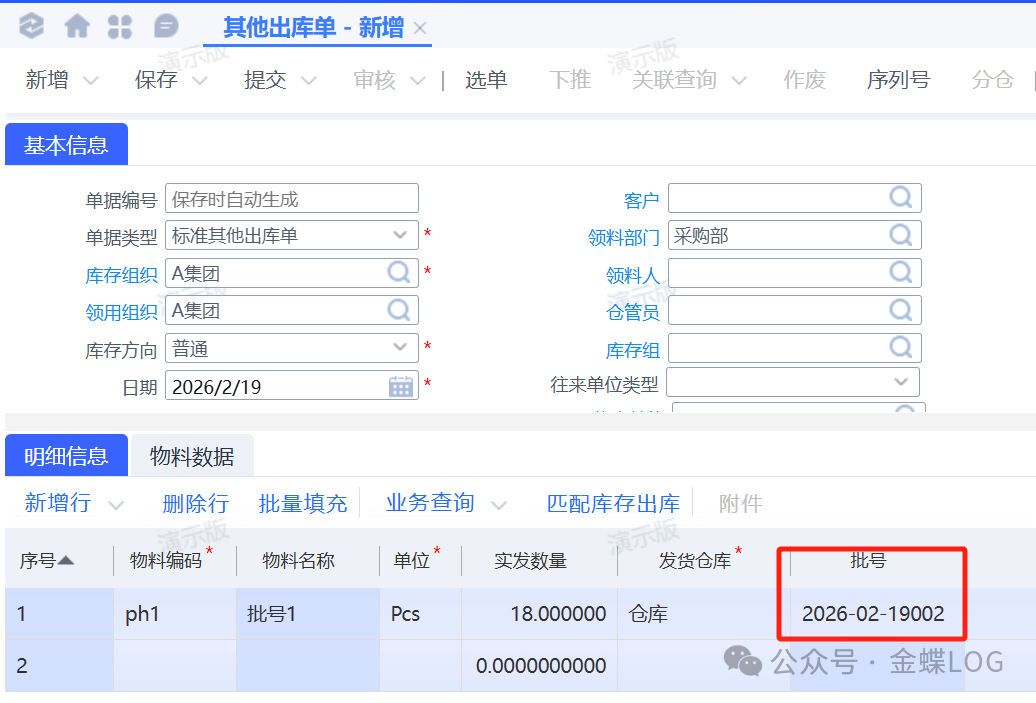 在这里,你可以设定批号的组合方式,例如:日期(如20260219)+ 流水号(001)
