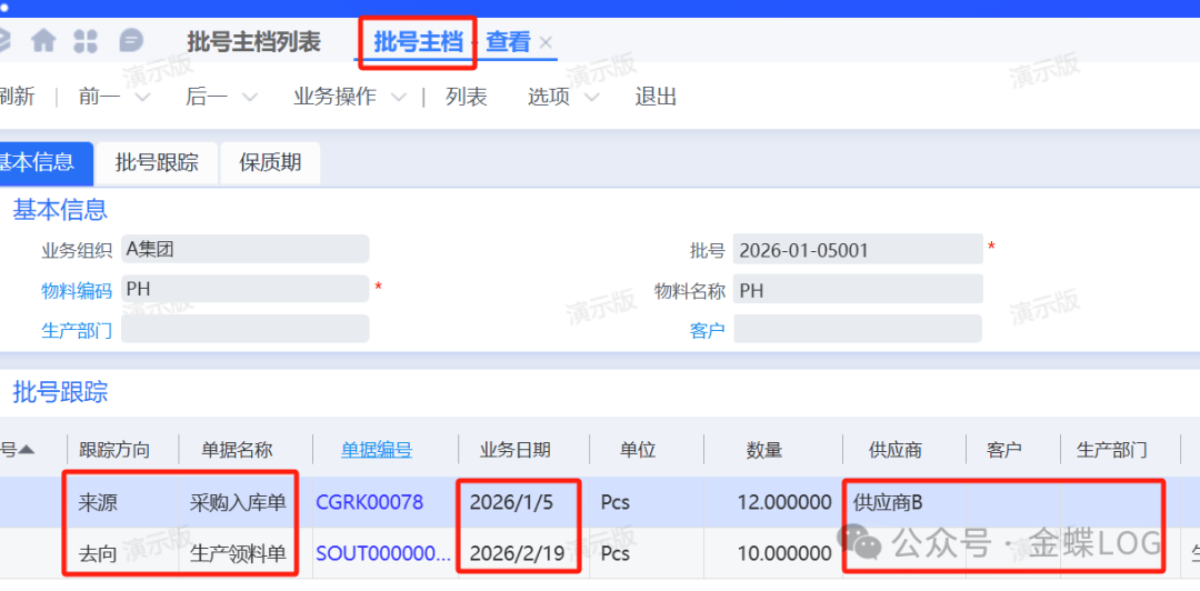 批号管理是企业实现物料追踪过程控制的重要工具。可以在批号主档里面,通过批号,查询到: