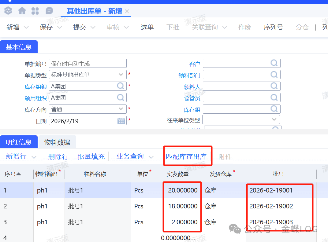 第四步:出库时匹配批号库存