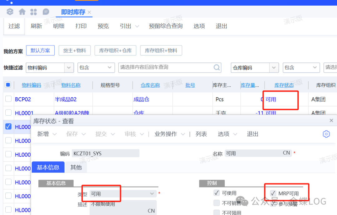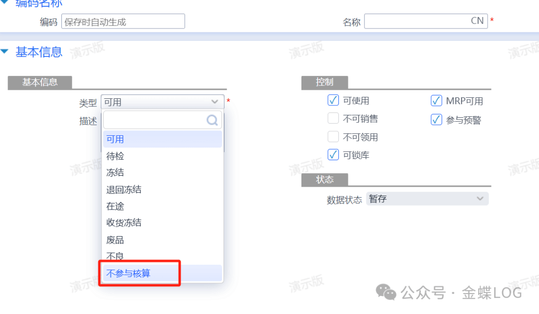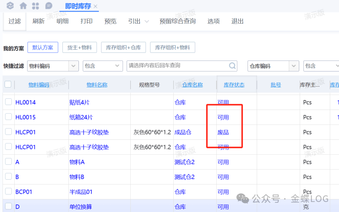 [点晴模切ERP]金蝶云星空“可用”、“待检”、“废品”、“不参与核算”等库存状态的作用