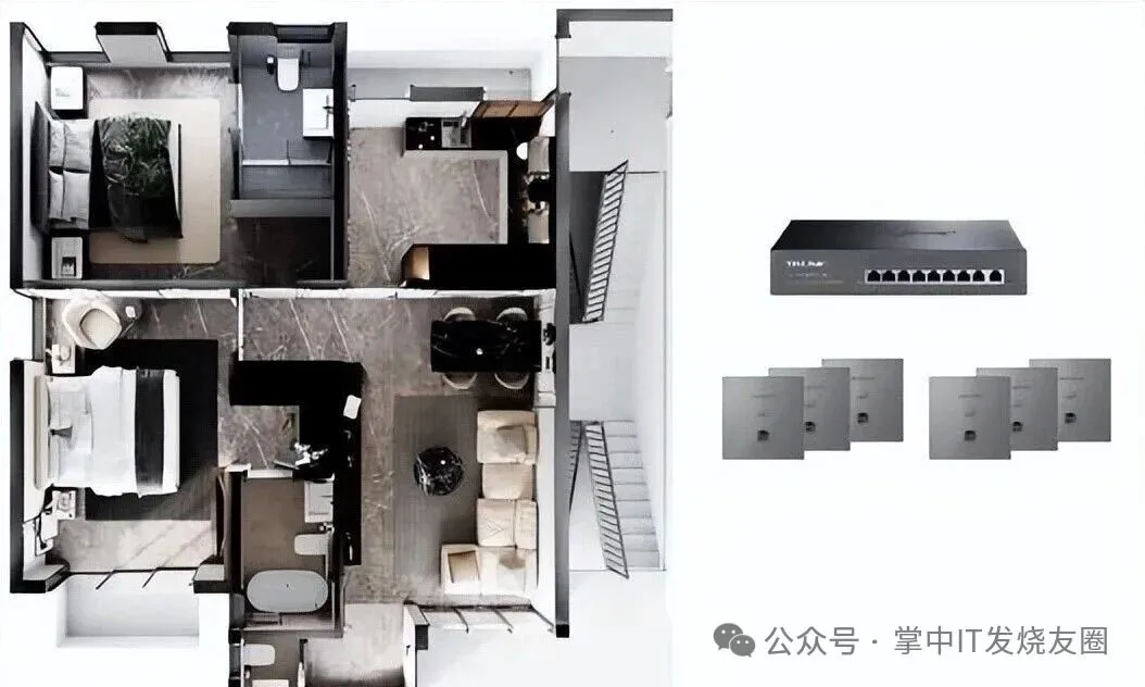 一句话简单总结的话,就是Mesh组网胜在灵活、简单、成本低,而AC+AP胜在稳定、美观、性能强。 三、不同户型怎么选? ①优先选Mesh组网的情况 ●中小户型:2-3台高性能路由器可能就够用,后续可以根据信号薄弱区域逐步加装节点。 ●预算有限/租房党:无需破坏墙体,直接利用现有插座部署,搬家也能带走。 ●怕麻烦的用户:追求简单便捷,不想折腾布线。