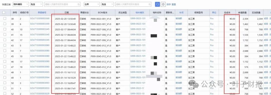 过年前写的一篇委外加工半成品的核算,现在我们来说说受托加工材料生产的产品如何核算成本,这两个知识点是正、反面,放在一块讲,会更好对比和理解。 受托加工材料:是在谈业务,签订合同时,由客户投出材料到我们工厂生产,订单签订为每一套产品的定价是多少(也是代指加工费),一共要生产多少套,损耗率控制在3%—5%内,PMC接到销售订单后以ERP系统销售模块录入销售订单,之后录入生产订单号等,同步安排车间作业,跟正常的订单相比,除了没有主要材料金额以外,成本核算流程都是一样的,按工时分摊人工、分摊制造费用等,按该订单的行号对应的产品做成本核算对象。 值得注意的是:收到客户物料时做是受托加工物料列表的入库单据,此类单据只有数量,没有成本金额。此模块单据的物料跟正常生产领用的是分开核算的,受托加工物料有入库,有生产领用,但没有成本金额。 下面我们来说说两个重点:供应链做单流程与财务记账。 一、受托加工ERP做单据的方法:由PMC部门做入库单据,登录系统账号。 1)创建客户档案:填写客户的基本信息和委托加工的相关内容。 2)合同管理:通过系统管理模块进行合同管理,签订委托加工合同,明确双方责任和权利。 3)建立生产计划:在ERP系统中建立生产计划,安排生产计划和生产任务,确保按照客户的要求进行生产加工。 4)受托加工原材料:通过仓库模块录入客户提供的原材料批次(我们统称为:客供料),保证生产所需的原材料充足。 5)监控生产进度:ERP系统可以帮助监控生产进度,了解生产线上的实时情况,确保按时完成客户的加工要求。 6)库存管理:ERP系统可以进行库存管理,及时了解产品库存情况,确保库存充足。 7)财务结算和发票管理:在生产完成后,ERP系统可以帮助进行财务结算和发票管理,确保按照合同约定进行结算,并生成相关的财务报表。 二、受托加工材料的入账方法 1)收到委托方材料时,记入备查账,备查账只登记数量、规格等与受托加工有关的内容。 加工过程中发生的人工费用、分配的制造费用,借记“生产成本”,贷记“应付工资”、“制造费用”。 2)加工完工,验收入库,借记“库存商品”,贷记“生产成本”。 交货时,借记“银行存款”或“应收账款”,贷记“主营业务收入”。同时结转销售成本,借记“主营业务成本”,贷记“库存商品”。