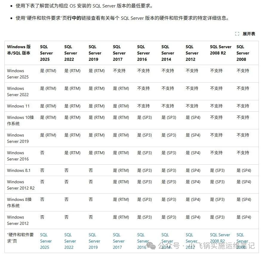 一张表说清楚Windows系统安装SQL Server最低版本要求