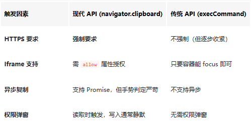 权限陷阱:为什么你的“点击复制”在某些浏览器或 iframe 里会失效?