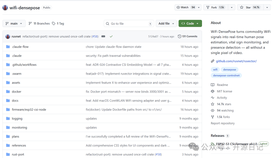 去年 CMU 发了篇论文,用 WiFi 信号做人体姿态估计,当时看着挺玩的。 学术验证嘛,大家也没太当回事。 结果现在 ruvnet 把这玩意真做出来了,开源项目 WiFi DensePose,几个月 14800+ Star。