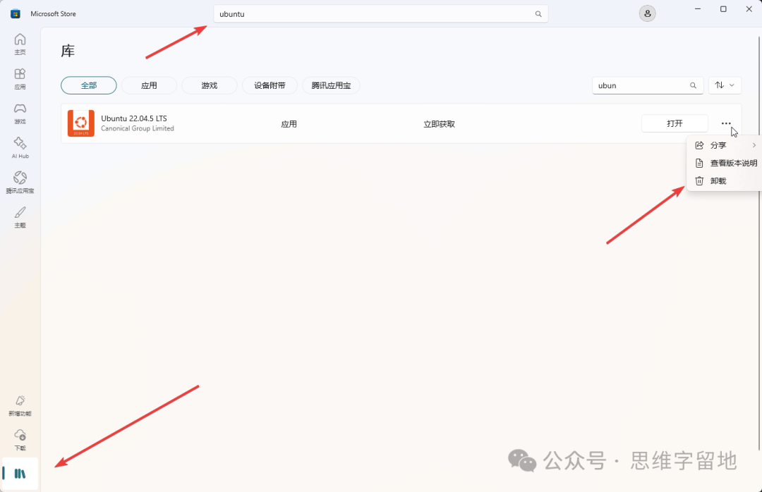 wsl 全称是 Windows Subsystem for Linux。 看名字就可以想到,这是 windows 系统中的 linux 子系统。 简单来说,就是在你的win系统中,安装一个Linux。 该工具的底层逻辑本文就不分析了,读者可以自行查阅。本文直接讲怎么用: wsl的安装用管理员角色运行PowerShell。 输入wsl --install ![]() 没错!就这一条指令就可以了。 安装完成之后,需要重启你的计算机。因为一些底层功能需要重启才能生效。 linux系统的安装有了工具还不够,因为工具只是一个平台,我们还需要在平台上搭建系统。 下面分享三种安装方式: 1、默认安装wsl --install指令其实已经默认帮我们安装了一个Ubuntu系统。 你需要输入用户名以及密码来配置这个Ubuntu系统。 ![]() ![]() 但是,因为网络问题或者其它原因,这个Ubuntu系统不一定能安装成功。 如果不成功的话,你可以参考下面两种方式。 2、指令安装输入wsl --list --online指令,查看可以安装的操作系统。 ![]() 选择一个操作系统,例如 Ubuntu-22.04。 输入wsl --install -d Ubuntu-22.04 请注意:因为网络问题或者其他原因,这个方式可能依然会失败,如果失败了,你可以参考最后一种方式 3、store安装打开你的 win 系统的 store 商城。 ![]() ![]() ![]() 然后,搜索Ubuntu,选择其中一个开始安装。插句题外话:安装任何工具,建议安装带有 LTS 后缀的版本,因为这是官方发布的、长期维护的版本。 linux启动安装 linux 系统成功之后,我们尝试启动它。启动 linux 的方式有如下两种: 1、命令行启动输入wsl --list查看已安装的linux系统。 ![]() 输入 wsl -d Ubuntu-22.04 启动指定的操作系统。 第一次进入系统的时候,会让你输入用户名和密码,跟着提示操作就可以了。 ![]() 2、图形化启动你可以在开始菜单找到对应的图标,鼠标点击启动。 ![]() 另外,如果想退出 linux 系统,回到win系统的话,就输入exit即可。 linux系统卸载如果这个系统不想要了,可以通过以下两种方式删除: 1、store卸载如果你的linux系统,是通过store安装的,你可以在store工具中卸载。如下所示: ![]() 请注意,这个方式是无法将linux系统完全清理干净的,因为你本地依然保留了已经下载好的linux系统。 所以,你需要执行下面的操作。 2、指令卸载命令行输入 wsl --unregister Ubuntu-22.04。 ![]() 可以看到,对应的linux系统已经被清理干净了。 以上就是 wsl 工具安装、启动、卸载的基本操作,有了 wsl,再也不怕把电脑搞乱了,快来试一下吧!! 阅读原文:https://mp.weixin.qq.com/s/P_1qFSwptHooIaUQ0Uavew 该文章在 2026/3/4 15:33:33 编辑过 |