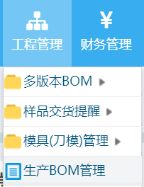 操作步骤:工程管理-生产BOM管理