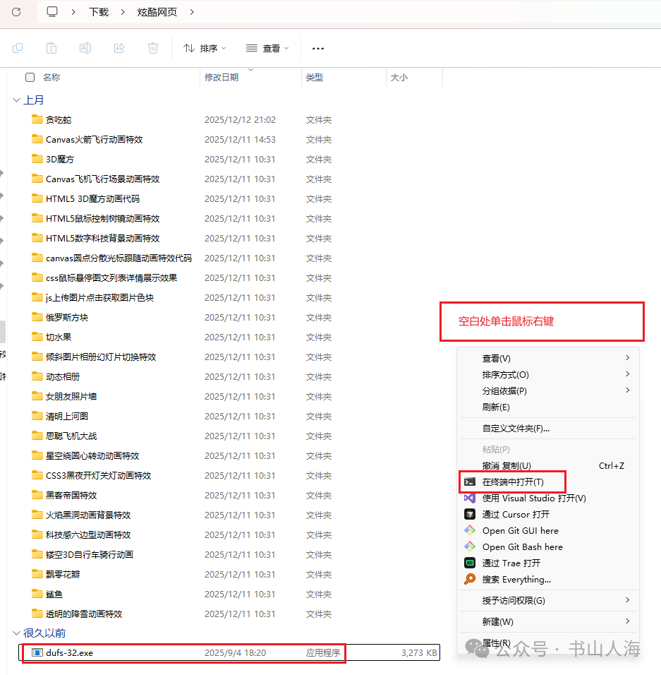 推荐了一款特别小众小巧并且功能强大的软件Dufs,下面我们一起来看一下这款软件具体使用吧! 软件介绍该软件托管在github上,是一款开源的工具,地址如下: Dufs的Github主页:https://github.com/sigoden/dufsDufs下载页面 :https://github.com/sigoden/dufs/releases 有博客专门为这个软件写了一篇介绍的文章,提到了“Dufs一款非常小巧且功能强大的文件服务器,你可以用它搭建文件服务器,它可以用于静态文件服务、文件上传、搜索、访问控制以及WebDAV等功能。” 感兴趣的朋友们可以看一下:https://www.iewb.net/content/html/78.html 由于访问该软件的github下载地址常常会因为网络问题而访问失败,故作者将其Windows版本的下载后存放于网盘,以方便大家下载。其他版本例如MacOS以及Liunx版本的可以到git上下载。 github下载地址:https://github.com/sigoden/dufs/releases 蓝奏云盘下载地址: 64位版本https://datastrong.lanzoue.com/iZjw43fl1uab 密码:e7zq 32位版本https://datastrong.lanzoue.com/iNOZR3fl1ubc 密码:b7xj 从git上下载的对应的是: 1. 点击下载好的软件就可以了,不需要安装。 打开后就有对应访问的地址,可以复制到浏览器打开。 这里要注意,在哪里打开的文件,默认分享的就是当前文件夹。 2. 软件可以移动到需要分享的文件夹下打开。如果需要添加其他权限可以将该软件放在系统环境变量的目录下,添加一个系统变量后直接使用命令行工具进行操作。 或者在软件目录下打开Windows命令行工具,输入.\dufs-32.exe -A 即可,具体使用方法在后续。 目前该软件支持的操作有: -A(--allow-all):允许所有操作 --allow-upload:允许上传 --allow-delete:允许删除 --allow-search:允许搜索 --allow-symlink:允许链接 --enable-cors:允许跨域 --render-index:允许渲染index.html,如果没有index.html返回404 --render-try-index:允许渲染index.html,如果没有index.html则展示文件夹内容 --render-spa:渲染单页应用 --tls-cert:https证书cert路径 --tls-key:https证书key路径 1. 将该软件移动或者复制到需要分享的文件夹下。 2. 双击打开软件,默认弹出了Windows的命令行的黑色窗口,注意:在分享的过程中不能关闭这个窗口,否则将无法访问。 第一个和最后一个地址都是本机浏览器访问的地址。 第二个地址是同一个局域网内其他主机浏览器访问的地址,也就是可以分享他人的地址。 3. 在需要访问该服务器的主机上打开浏览器,输入软件运行后的命令行窗口的第二个局域网的地址即可访问。 若需要给文件服务器添加其他权限,例如上传等,可以在命令行窗口进行操作。 1. 将下载的dufs复制到需要分享的文件地址下,在当前文件路径下【单击鼠标右键】,点击【在终端中打开】 2. 在打开的终端中输入以下命令。 3. 该命令意思是允许所有操作,在其他主机浏览器中打开如下。 可以发现确实多了很多功能,例如可以点击下载,这个下载是指将整个文件夹打包成zip格式一次性全部下载下来。 可以点击上传按钮,打开了选择窗口,选择任意文件上传到服务器。 除了基本的上传和下载之外,还有新建文件夹,新建文件以及搜索文件。其中新建文件提供了文件编辑界面,可以输入和编辑以及保存文件内容。 文件后面的三个按钮分别是下载,移动以及删除文件。 阅读原文:原文链接 该文章在 2026/3/9 11:02:56 编辑过 |