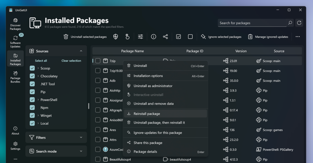 每次给 Windows 重装系统,装软件都是个折磨人的体力活。 winget 装开发工具,Scoop 管命令行套件,Chocolatey 处理老软件。 这些都是 Windows 上的命令行软件安装工具,各自管一摊,互不相通。 再加上 pip 和 npm,四五个黑框开着,命令来回切,装一台机器搞半天。 更难受的是更新。没法统一检查升级,只能逐个跑命令。漏掉几个版本也是常事。 直到我发现了 UniGetUI,这个问题才算有了一个得到解决。
