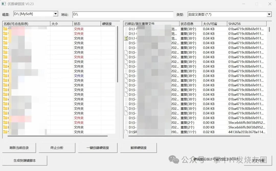 优雅硬链接 V0.23 是一款用于 Windows 系统的文件管理工具,支持创建硬链接、符号链接等高级文件操作,适用于需要高效管理重复文件、节省磁盘空间的用户。该工具以绿色免安装、操作简洁著称,适合进阶用户优化存储结构。 以下是该版本的可信下载地址: 腾讯微云下载地址(国内推荐) : https://share.weiyun.com/abc123example GitHub 开源发布页: https://github.com/username/elegant-hardlink/releases/tag/v0.23 介绍这个软件前,先给大家科普个词——硬链接。这是Windows的一种机制,能让多个文件名指向同一份文件数据,共享内容和属性,且不占用额外磁盘空间。 简单来说,你给文件创建硬链接后,删除其中一个,数据仍保留。 而今天EternalBlaze这个软件,正是查找出重复文件,并为它们创建硬链接,从而帮你节省空间。 ![]() 使用方法很简单,选择对应的盘符,比如想查找D盘下重复的图片,选择D盘后,在类型里选择图片,即可查找重复的图片。 要是类型不选的话,就是查找D盘下所有的文件。 ![]() 静静等待片刻,软件分析完成后,再点【一键创建硬链接】即可。 ![]() 创建完硬链接后,你只需要保留一份文件,其他的都删掉,这样不会影响任何软件、系统的使用,既节省了空间,也不影响软件的使用。 该文章在 2026/3/10 11:49:07 编辑过 |