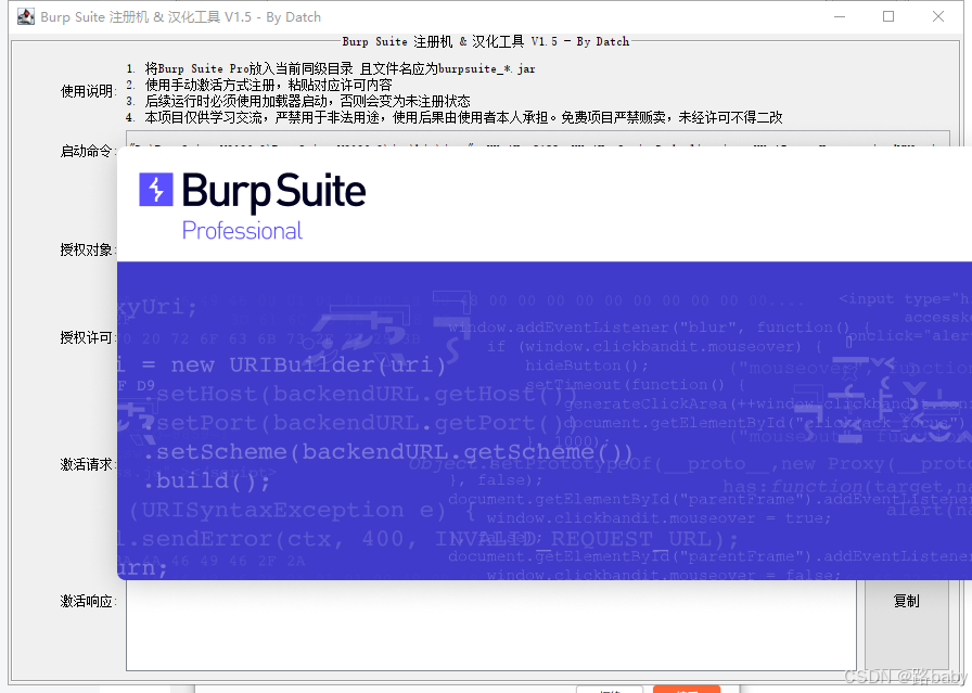 这个页面已经比之前的版本要简明许多了 这里我们只需要选择汉化即可(后面的以后有需要可以自行选择) 勾选后直接点运行即可唤醒burp(首次激活使用必须按照步骤)