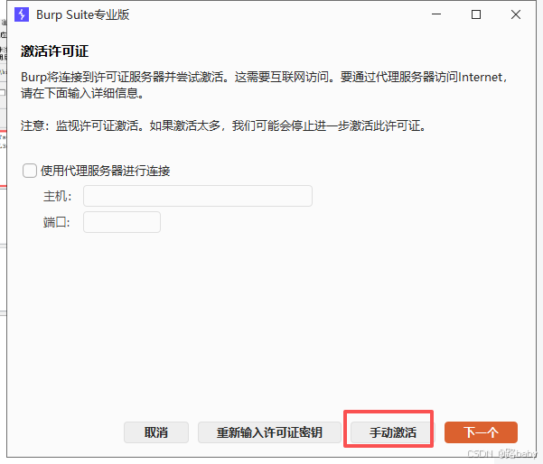 随后按照下图步骤将burp第二步给的秘钥粘贴进注册机 并将注册机生成的最后的秘钥粘贴进burp 按照下图步骤进行 然后点击下一个