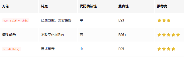 方法3:使用var self = this(经典方案)