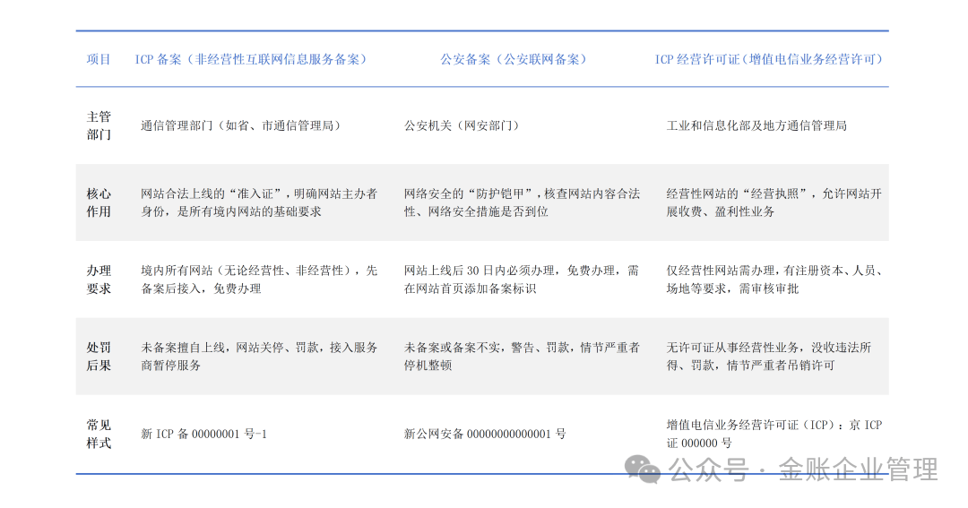 很多刚注册完公司、计划做官网的老板,都有同样的困惑: 做企业官网到底要办哪些备案? ICP备案和公安备案是不是二选一? 什么情况下需要办ICP经营许可证? 今天就用最直白的语言,把这3个证的区别、用途、办理要求全讲透,一看就懂、一学就会,再也不用怕踩合规红线! ![]() ![]() 核心本质区别 ▎一、区别对比 很多人混淆这3个证,核心是没分清它们的“职责”——简单说,ICP备案是“准入门槛”,公安备案是“安全防护”,ICP经营许可证是“经营资格”,具体区别看下面这张表,直接对照自查! ![]() 补充:三者优先级——先办ICP备案(网站才能上线),上线后30日内办公安备案,若网站涉及盈利,再办ICP经营许可证。 ![]() 可落地操作 ▎二、ICP备案 所有境内网站的“必办项”(免费,最基础)。 先备案,后接入,只要你的网站服务器在中国大陆,无论是否盈利,都必须办!哪怕是个人博客、企业官网(仅展示信息),也不能例外。 (1)适用场景 • 企业官网(仅展示产品、公司信息,不收费、不交易); • 个人博客、自媒体网站(仅分享内容,无盈利行为); • 事业单位、社会组织网站(如公益宣传、政务公示类); • 经营性网站的“前置步骤”(办ICP经营许可证前,必须先完成ICP备案)。 (2)办理流程 1. 找接入服务商(如阿里云、腾讯云等),通过其备案系统提交申请; 2. 填写网站主办者信息(企业提供营业执照,个人提供身份证)、网站信息,上传相关证件扫描件; 3. 接入服务商初审、核验信息真实性(部分需现场核验或人脸核验); 4. 初审通过后,服务商提交至通信管理局,管局审核通过后发放ICP备案号; 5. 网站首页底部需标注备案号,并链接至工业和信息化部备案查询平台。 ▎三、公安备案 网站上线后的“安全必修课”(免费,易遗漏)。 这是最容易踩坑的点!只要网站上线,无论是否盈利,都必须在30日内完成公安备案。 (1)适用场景 • 所有已完成ICP备案、正式上线的网站(包括企业官网、个人网站); • APP、小程序等网络平台(只要涉及用户交互、信息发布,均需办理)。 (2)办理流程 1. 进入全国互联网安全管理服务平台(https://www.beian.gov.cn),注册并登录账号; 2. 填写网站基本信息、主办者信息、网站安全负责人信息、网络安全防护措施; 3. 上传营业执照、法人身份证、网站负责人身份证等证明材料; 4. 公安机关审核通过后,获取公安备案号,需在网站首页底部添加备案标识及链接; 5. 备案信息变更(如网站负责人、域名变更),需及时更新备案。 ▎四、ICP经营许可证 经营性网站的“必备资质”(需审批,有门槛)。 不是所有网站都需要办!只有网站涉及“盈利性业务”,才需要办理,非经营性网站无需申请,避免多跑冤枉路。 (1)适用场景 需要办的情况(经营性): • 网站有付费服务(如会员充值、付费咨询、付费下载); • 网站有广告投放、流量变现(如承接商家广告、软文推广); • 电商平台(如入驻式商城、第三方交易平台,自营电商无需办理); • 信息服务平台(如招聘网站、婚恋网站、付费资讯平台)。 需要办的情况(经营性): • 企业官网仅展示产品、联系方式,无任何收费行为; • 个人博客、公益网站,不涉及盈利。 (2)办理条件 1. 经营者必须是依法设立的公司(个人无法办理); 2. 有与开展经营活动相适应的资金(省内经营最低100万元,全国经营最低1000万元); 3. 有专业的技术人员、必要的场地和设施; 4. 公司及主要出资者、管理人员三年内无违反电信监督管理制度的违法记录; 5. 已完成ICP备案,且网站内容符合国家规定(无违法违规信息)。 ![]() 高频误区 ▎五、这4个错误,90%的企业都踩过 误区1:有ICP备案,就不用办公安备案 ICP备案是“准入”,公安备案是“安全”,两者缺一不可,漏办公安备案会被罚款、关停网站; 误区2:非经营性网站,也需要办ICP经营许可证 只有涉及盈利的经营性网站才需要,非经营性网站(如企业展示官网)仅需ICP+公安双备案; 误区3:ICP备案一次性永久有效 备案信息(如公司名称、网站域名、服务器)变更时,需及时更新,否则可能导致备案失效、网站关停; 误区4:境外服务器网站,不用办任何备案 只要网站面向中国大陆用户提供服务,且服务器在境内,就必须办ICP+公安备案;境外服务器虽无需ICP备案,但仍需遵守国内网络安全规定。 最后总结 记住一句话:所有境内网站,先办ICP备案,再办公安备案;若涉及盈利,补充办理ICP经营许可证,三者各司其职,少一个都可能踩合规红线,面临罚款、关停风险。 阅读原文:https://mp.weixin.qq.com/s/jAsrP9zwOZBv8knN7oLUQQ 该文章在 2026/4/7 15:28:55 编辑过 |