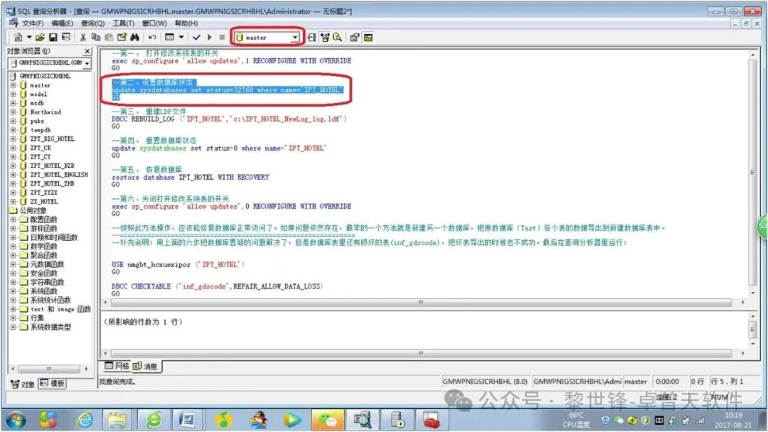 SQLSERVER数据库置疑的修复,用SQL语句修复置疑数据库