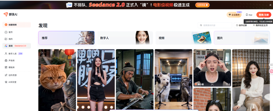 Seeddance.io:海外友好,低门槛,有免费积分