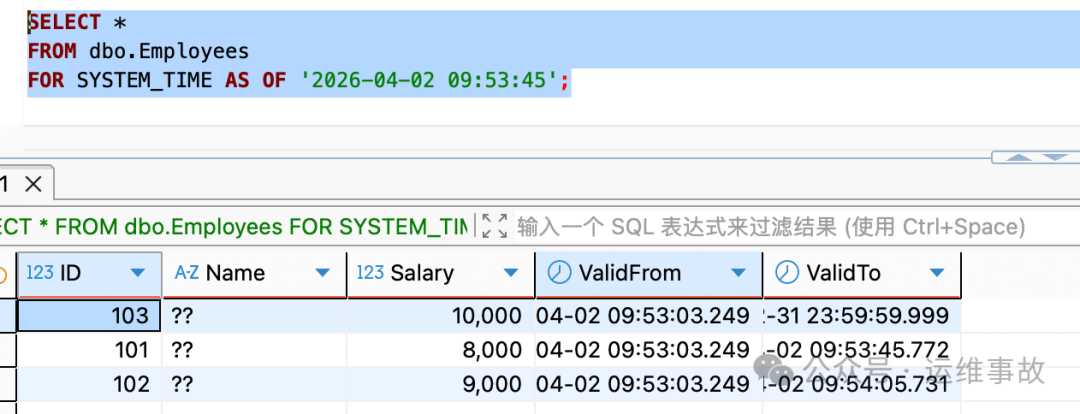 SQL Server 系统版本控制临时表:行级“时间旅行”