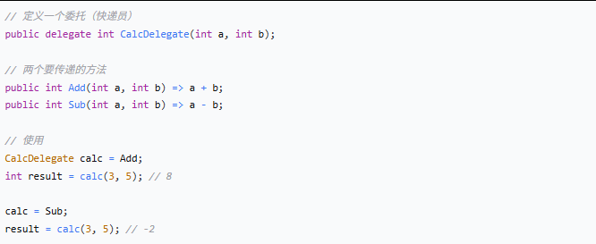 委托和事件是C#里最容易搞混的两个概念。今天用最通俗的方式讲清楚,看完你就懂了! 一、一句话说清楚委托:把方法当参数传来传去事件:安全的委托(外面只能订阅,不能乱调)二、委托:方法的快递员场景:计算器要点:委托像快递员,把方法送到你需要的地方三、事件:有规矩的委托场景:按钮点击要点:事件比委托多了规矩——只能订阅,不...