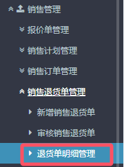 1.进入ERP系统后,在左侧功能菜单里找到“销售管理”,点开“销售退货单管理”,“退货单明细管理”
