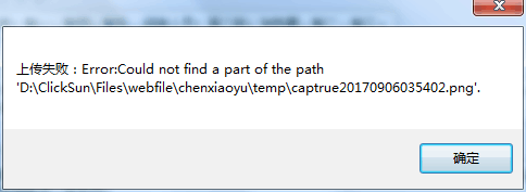 :信息通PC客户端截图完成后提示上传失败,如何解决?![]() 这个错误是OA服务器上没有目录:D:\clicksun\files\webfile\chenxiaoyu\temp造成的,导致无法上传图片到这个临时目录中,这是这个用户从未登录进入过WEB版OA的网盘所致,按道理系统会自动创建这个临时目录。