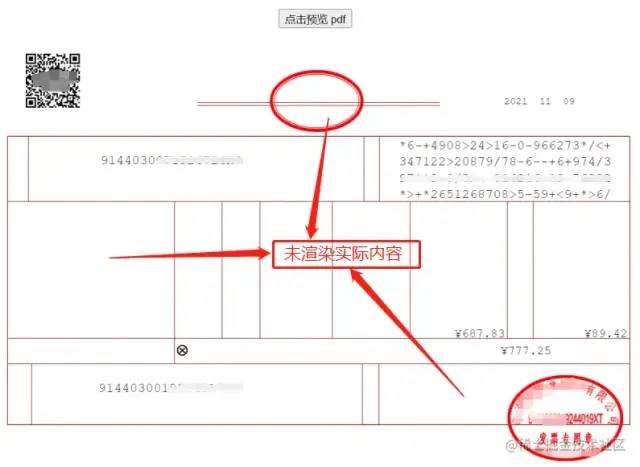 看上去加载正常的 pdf 文档 似乎没啥大问题,来试试加载 pdf 发票 看看,但由于实际发票敏感信息较多,这里就不贴出原本的发票内容,直接来看预览后的发票内容: