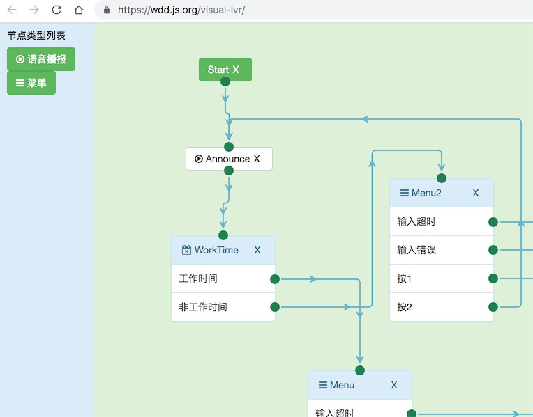 项目地址:https://github.com/wangduanduan/visual-ivr 在线demo: https://wdd.js.org/visual-ivr/