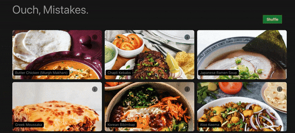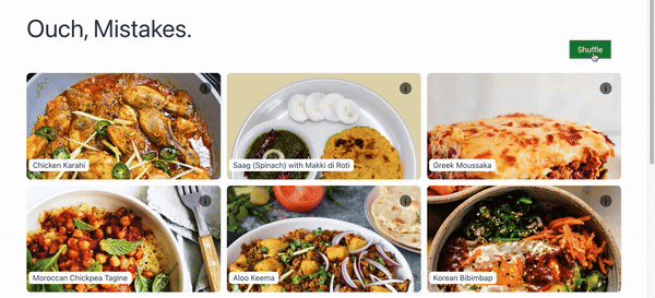 由于我们将数组的索引作为循环的 key,一切看起来正常。当我们点击“洗牌”按钮时,虽然配方的顺序发生了变化,但预期的过渡效果却没有显示。