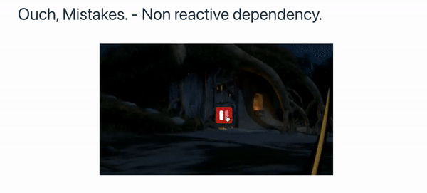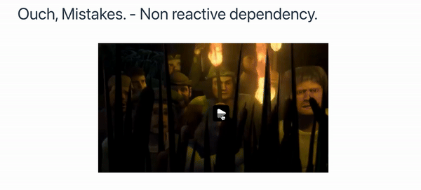 <h1 class="text-5xl">Ouch, Mistakes. - Non reactive dependency.</h1>