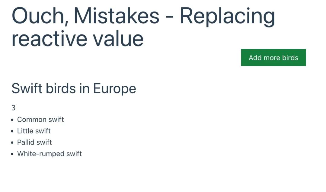 <h1 class="text-5xl">Ouch, Mistakes - Replacing reactive value</h1>