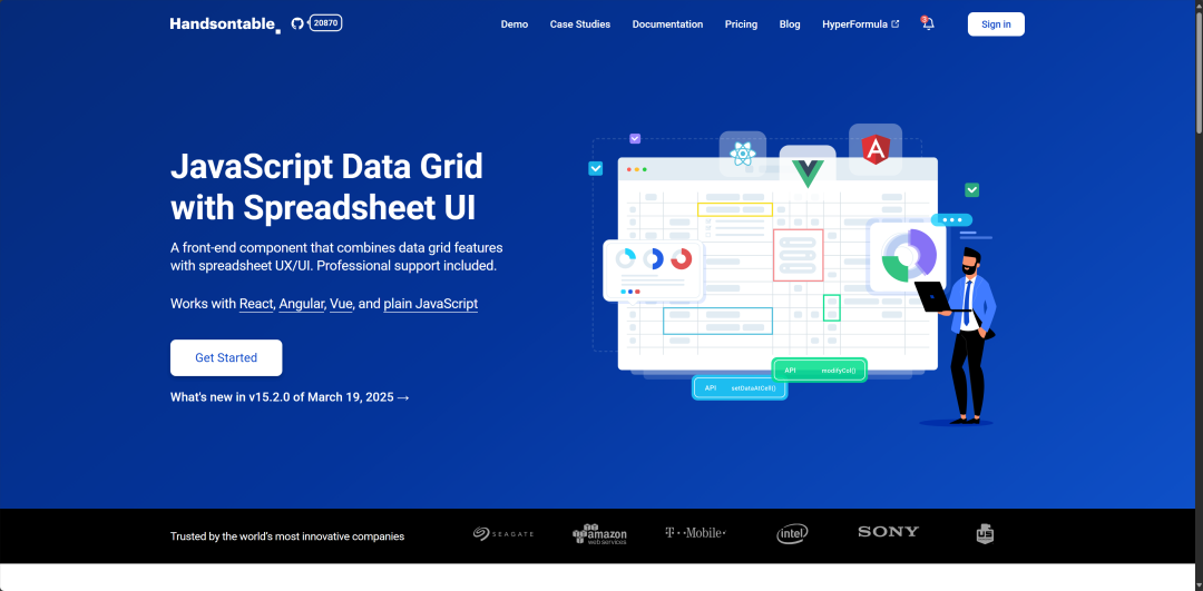:检查与React、Vue等的兼容性,Handsontable表现优异。