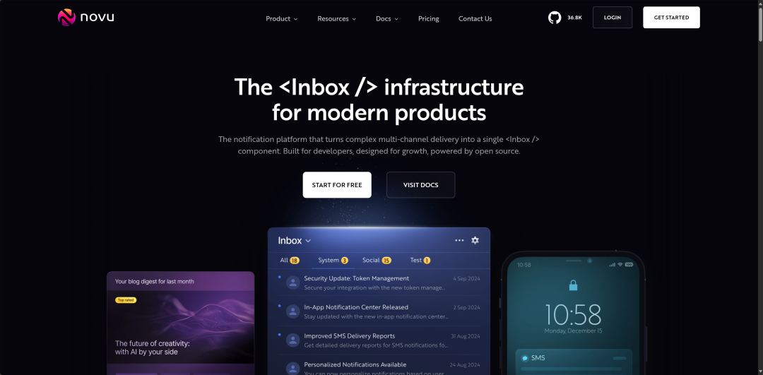 Novu 是一个用于管理多渠道通知的库,支持电子邮件、短信、推送和聊天通知,压缩后约50KB。