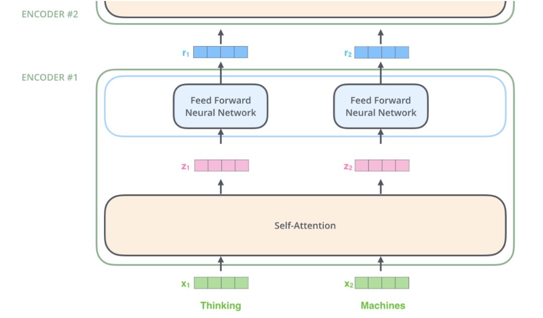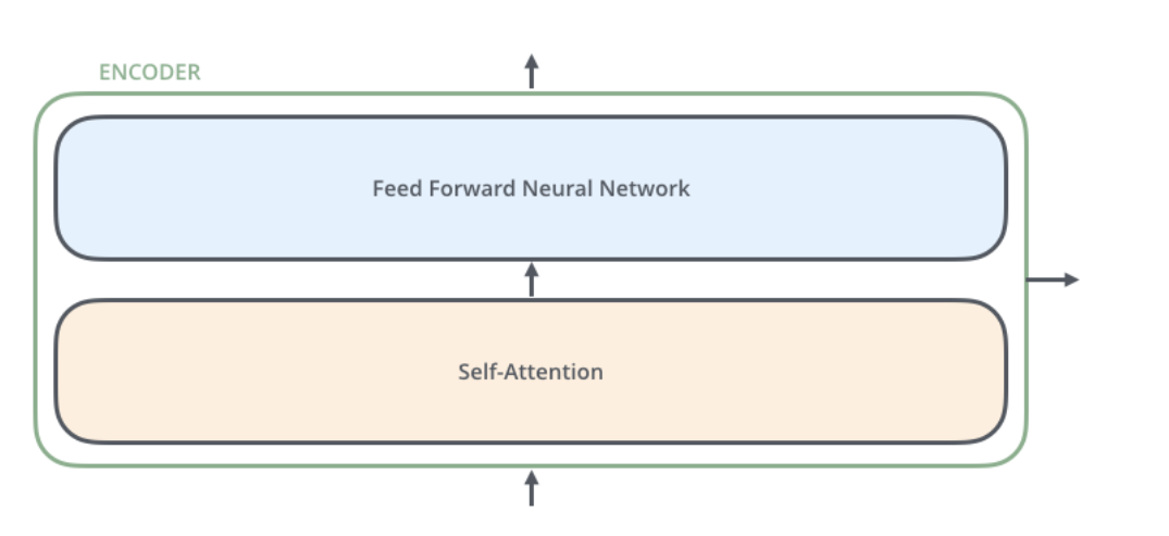 每一层的Encoder都是相同的结构,它由一个Self-Attention层和一个前馈网络(全连接网络)组成,如下图所示。