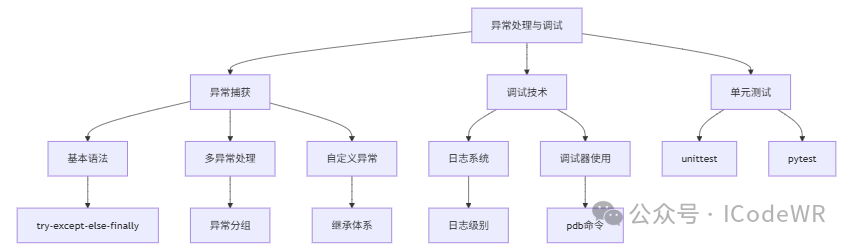 在编程过程中,错误不可避免。优秀的程序员不仅要能编写功能代码,更需要具有处理错误并进行高效调试的能力。Python提供了完善的异常处理机制丰富的调试工具,帮助开发者:
