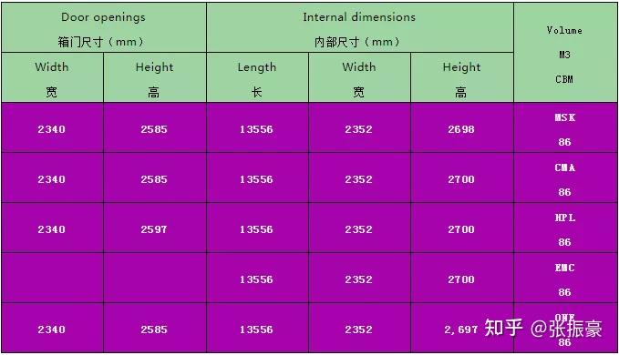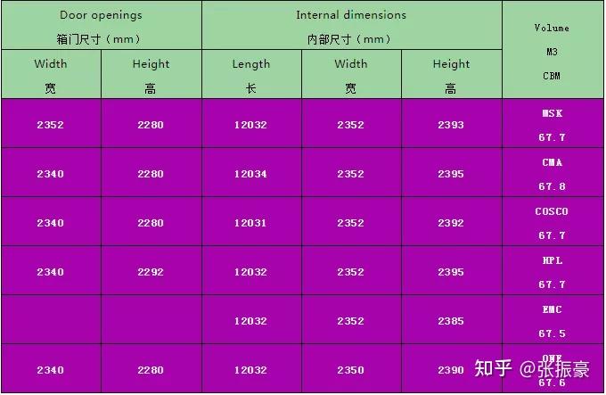 怎么计算装货量,装什么箱型,离不开最基本的一个数据,那就是集装箱的尺寸。 谈到集装箱尺寸,我们熟知小箱长度大概5.9米,自然而然很多人会以为大箱长度就是11.8米。 其实这种意识的长度是不准确的,大箱长度也不是小箱长度乘以2,那么集装箱尺寸到底是多少呢? 下面我们来详细说明。 关于集装箱尺寸,包含三个部分:外部尺寸、内部尺寸、箱门尺寸。 外部尺寸我们这里不做介绍,只要知道内部尺寸和箱门尺寸,我们用着就会得心应手! 干货箱(Dry Cargo) 1、20英尺普箱,表示为:20GP/20FCL/20SD/20DV/20DC/20DRY8.6