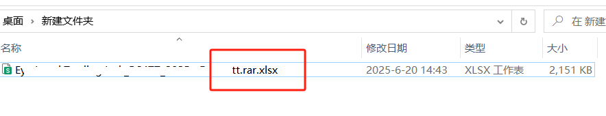 二、解决过程 首先我们要把excel文件的后缀扩展名称更改为.rar文件格式。但是我们不能直接更改成.rar扩展名,因为,现在系统中没有将扩展名显示出来,这时我们需要把扩展名显示出来。如果直接在excel文件后面加.rar,可以看到,文件还是excel格式,并不是压缩包格式。
