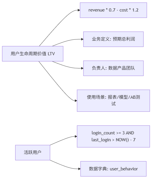 A[用户生命周期价值 LTV] --> B[revenue * 0.7 - cost * 1.2]