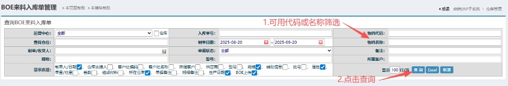 :点晴ERP-BOE组件来料单流程