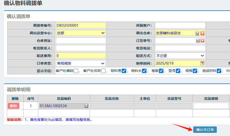 点击一条信息后,背景变色后,点击确认按钮 如下图: