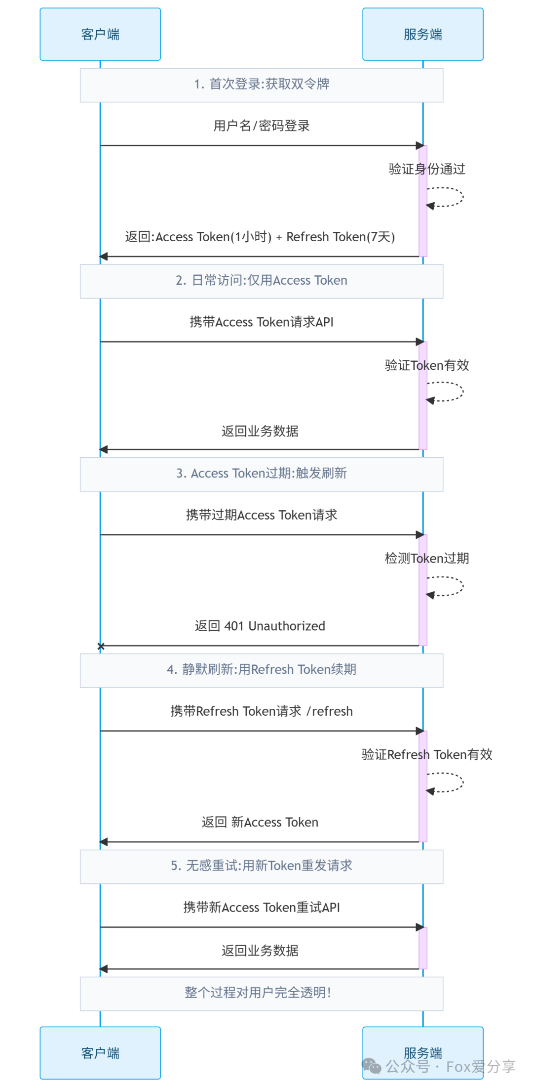 Access Token后,重新执行刚才失败的API请求。整个过程对用户完全透明。