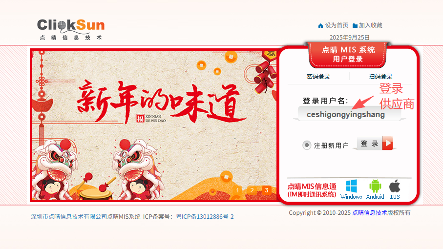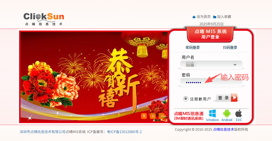 :点晴ERP-采购入库计划操作流程![]() 1.登录并进入ERP系统内。输入用户名和密码。