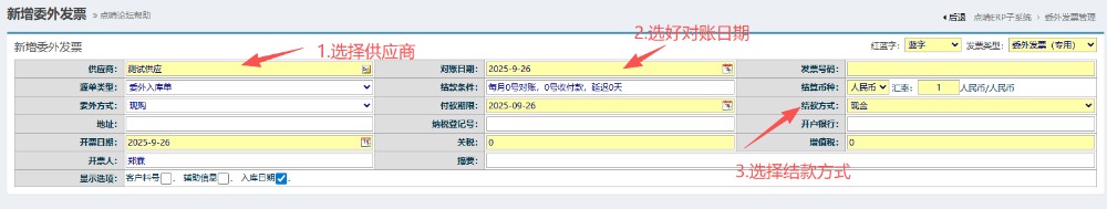 5.提交之后,可以到左侧功能菜单里找到“委外入库发票管理” 点击进入后,按图操作:点击查询,就能看到刚才提交的发票信息明细。 点晴模切ERP更多信息:http://moqie.clicksun.cn,联系电话:4001861886 该文章在 2025/9/26 10:08:25 编辑过 |
