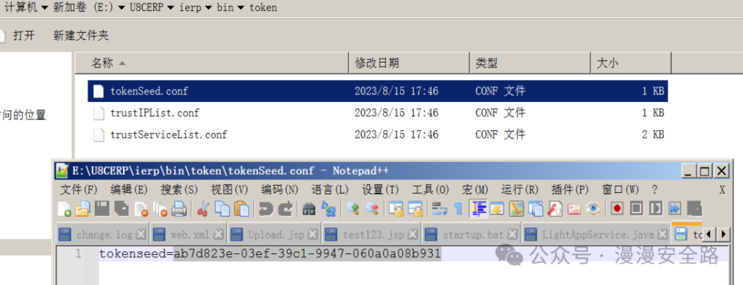 从nc.bs.framework.server.token.TokenUtil可知tokenSeed储存在/ierp/bin/token/tokenSeed.conf里我们直接查看安装包和安装后的这个文件发现没有任何变化说明是硬编码的不是启动后随机生成写入文件的。